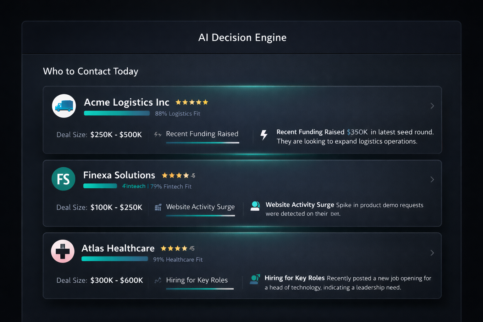 AI is an AI-powered prospect intelligence engine that scores, explains, and prioritizes high-probability B2B opportunities — so your outbound team focuses only on leads that matter.